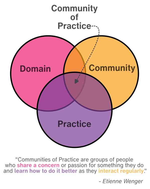 “Communities of Practice are groups of people who share a concern or passion for something they do and learn how to do it better as they interact regularly.” (see visualization below)